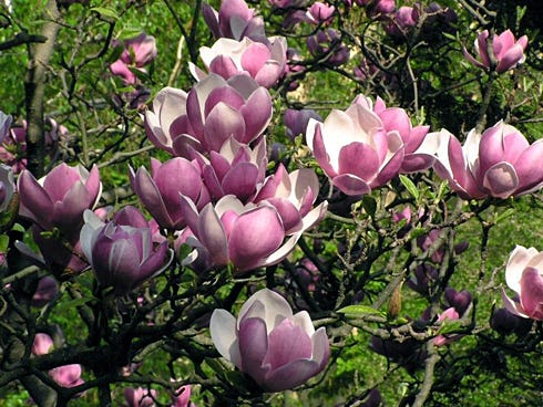 The saucer magnolia — Magnolia x soulangeana — is one of the earliest flowering trees to bloom.