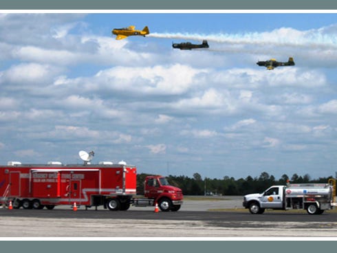 A North Okaloosa Fire District airport crash truck and Eglin Air Force Base’s Mobile Emergency Operations Center were among ground-based vehicles on display.